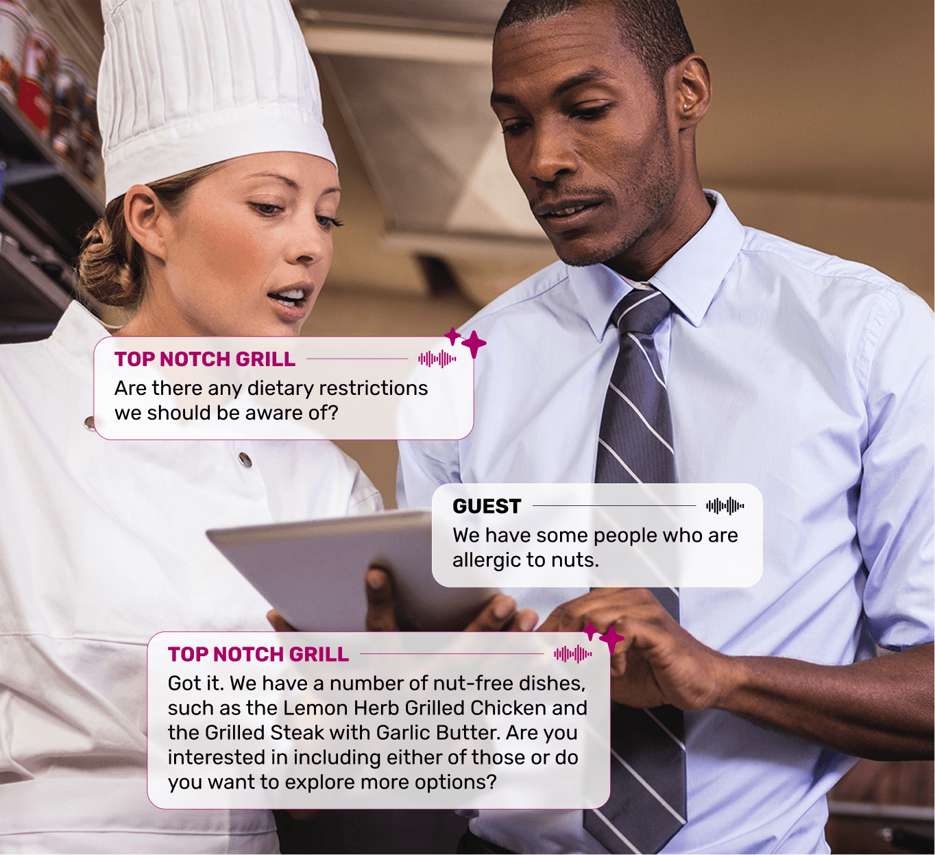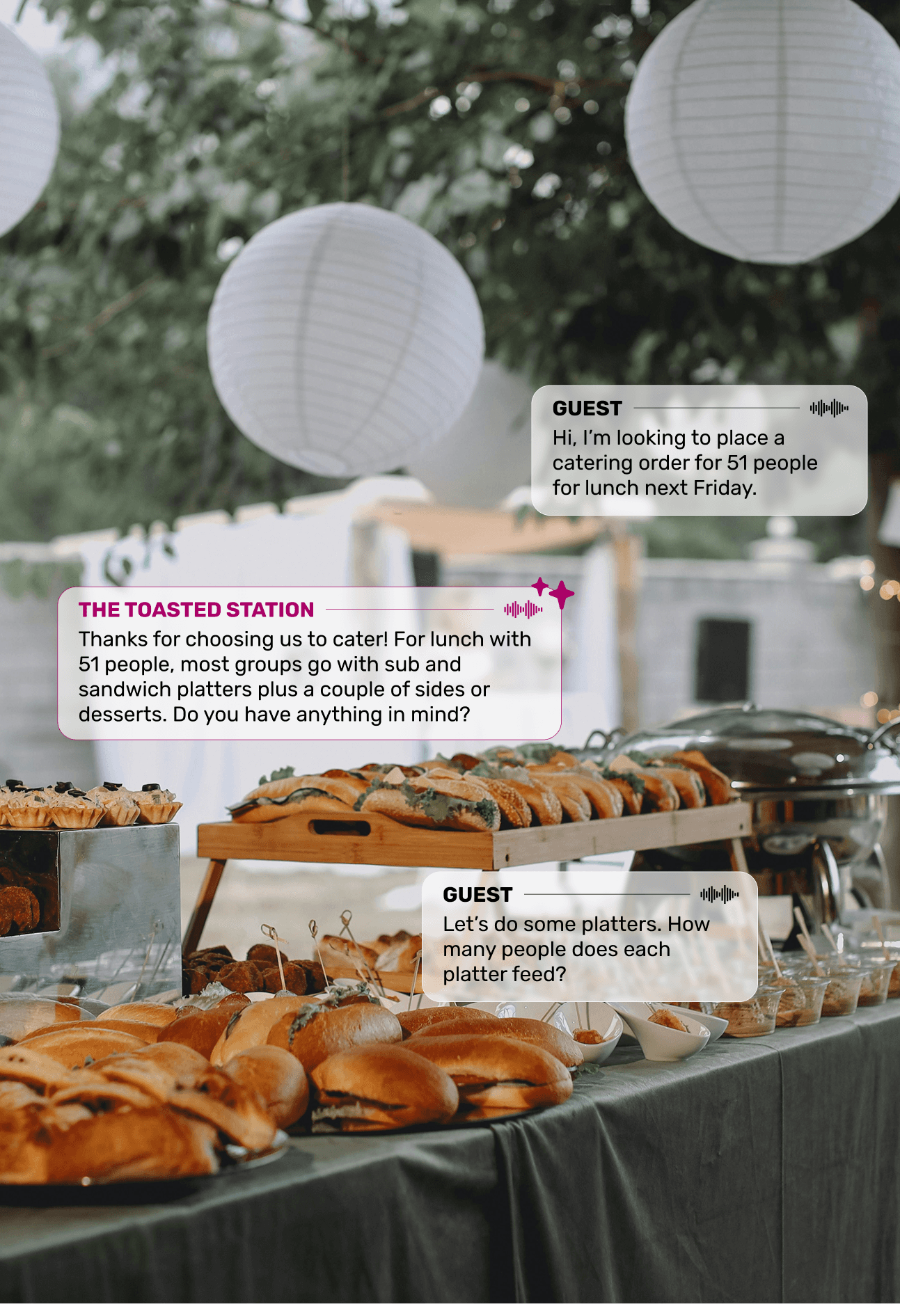 Handles menu recommendations, dietary restrictions, pricing calculations, and package selections while your team focuses on current service.